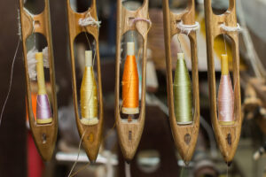 Loom in silk factory, equipment for silk worker to make silk fabric Loom in silk factory, equipment for silk worker to make silk fabric